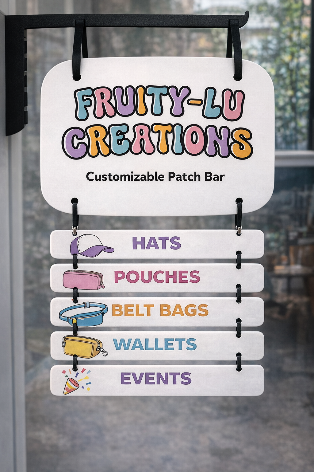 This hanging sign is inspired by real, working market setups and is designed to mount directly to a tent leg using a magnetic bracket, projecting outward so your brand is visible from down the row. Whether you choose a clean logo-only sign or a stacked menu-style sign, this piece adds polish, clarity, and charm to your setup.